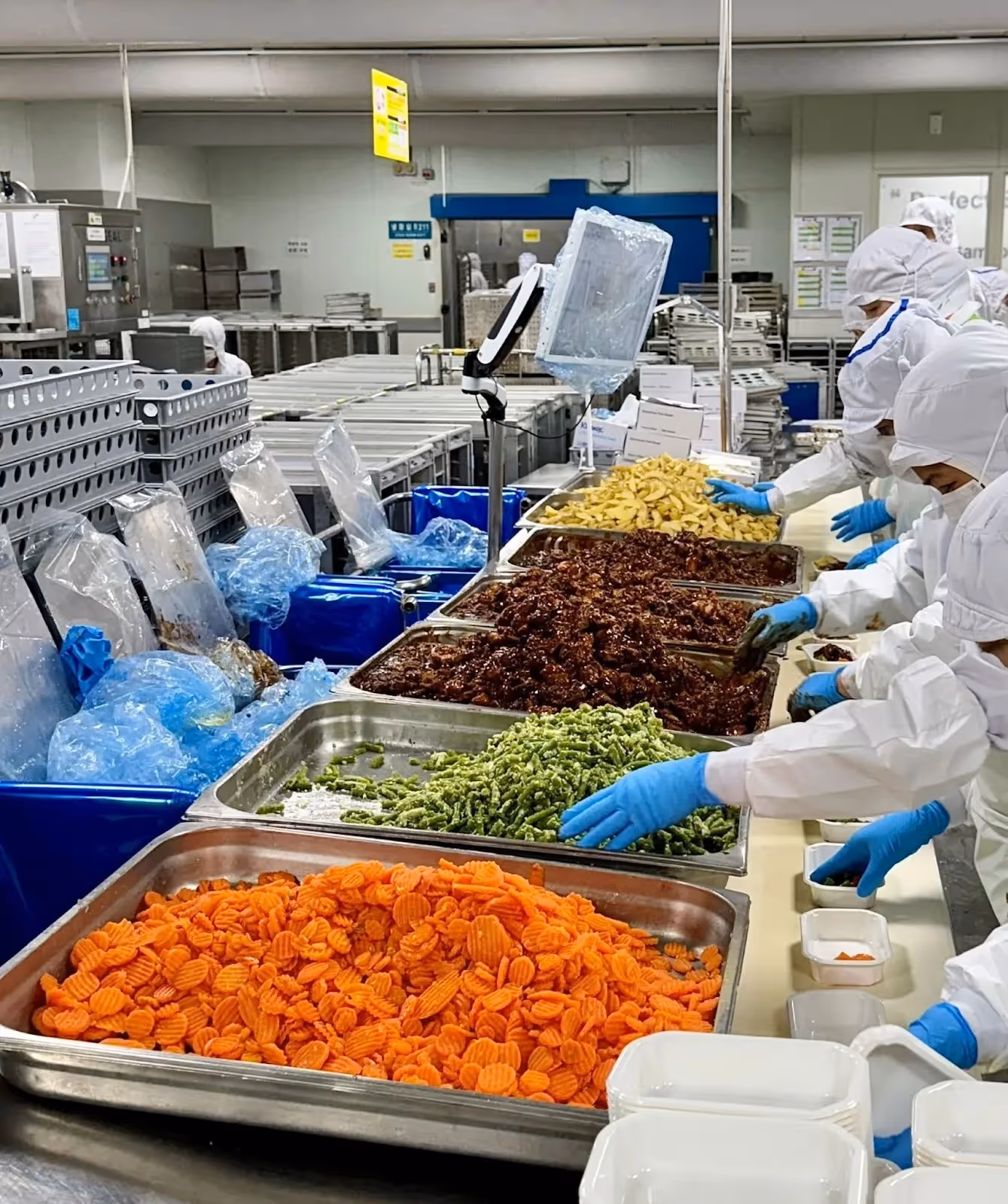 In-flight meals for Korean Air are prepared at its large catering facility located near Incheon Airport. All KE flights departing from ICN are ready here, before being loaded into the catering trucks and subsequently onto the aircraft.