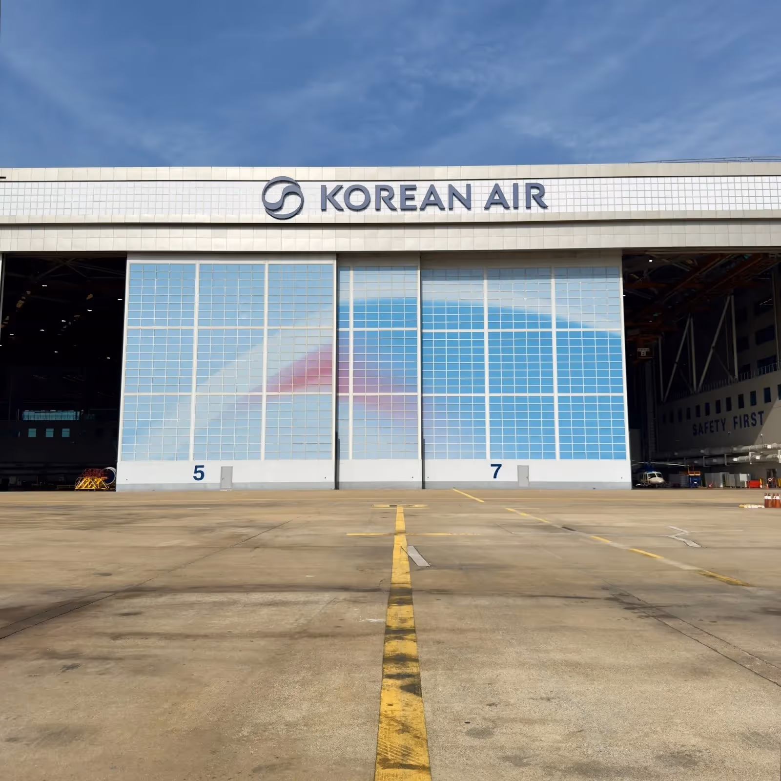 We visited the aircraft hangar at Gimpo, where Korean Air maintains its fleet. Up to 8 small aircraft (Airbus A220s) can be accommodated here, or two heavy aircraft and one small aircraft. KE operates multiple other maintenance bases across the country, including Incheon, Busan, and Bucheon.