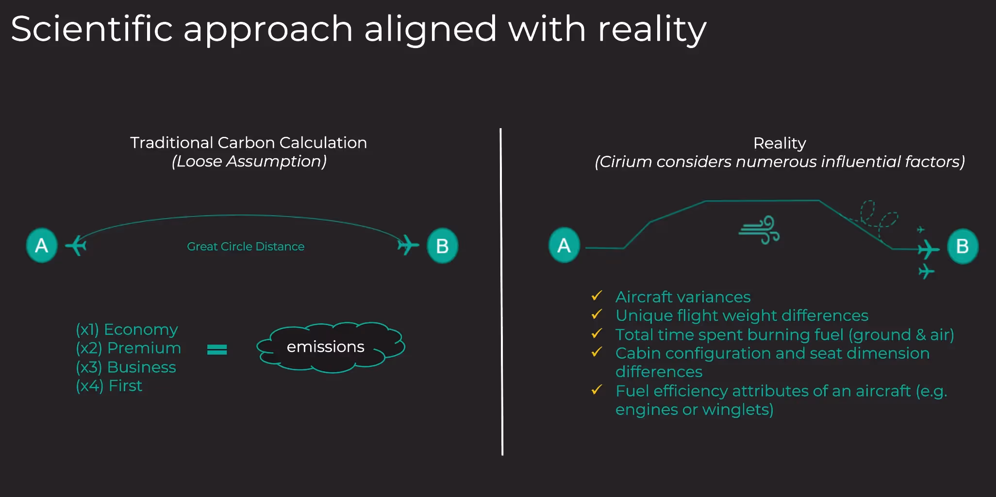 Unlike conventional models that estimate emissions based on average aircraft types and distances, Cirium’s approach factors in: