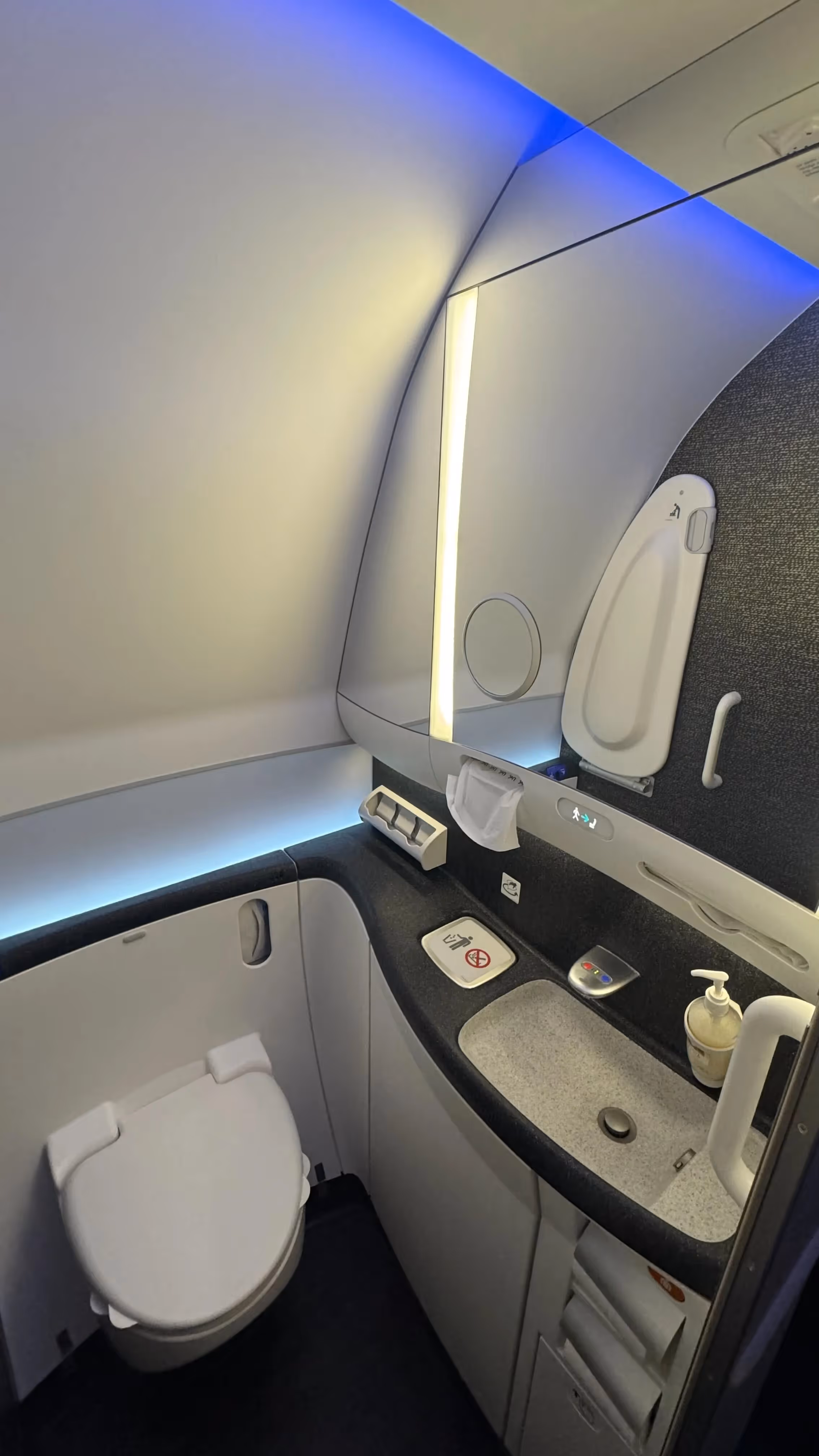 Designing a bathroom for an Airbus A320 or Boeing 777 is not as simple as shrinking a home restroom. The space constraints are brutal. Imagine squeezing a functional toilet, sink, trash, and even a tiny changing table into a box that’s often less than 4 feet wide. Every square inch is precious, so engineers use curved corners, fold-down sink covers (some sinks fold up to make space), and recessed dispensers to minimize bulk. There’s barely room to turn around – that’s why lavatory doors swing outward (they wouldn’t open if the stall is occupied!).