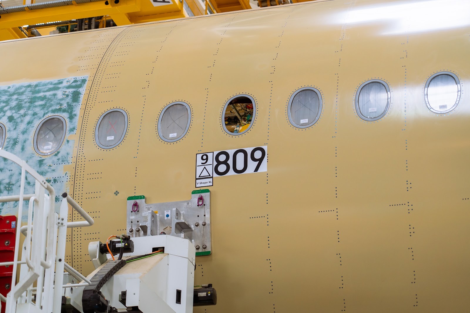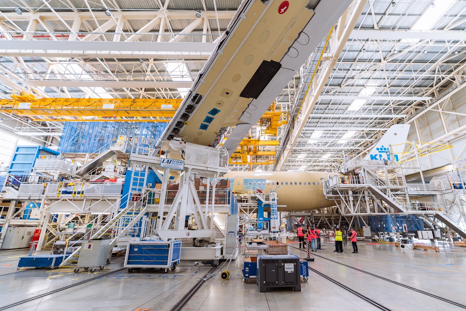 The aircraft’s winglets and engines will be installed at a later stage in a different hangar. After receiving its blue paint coat, MSN 809 will embark on a series of tests and customer acceptance flights before joining KL in the summer.