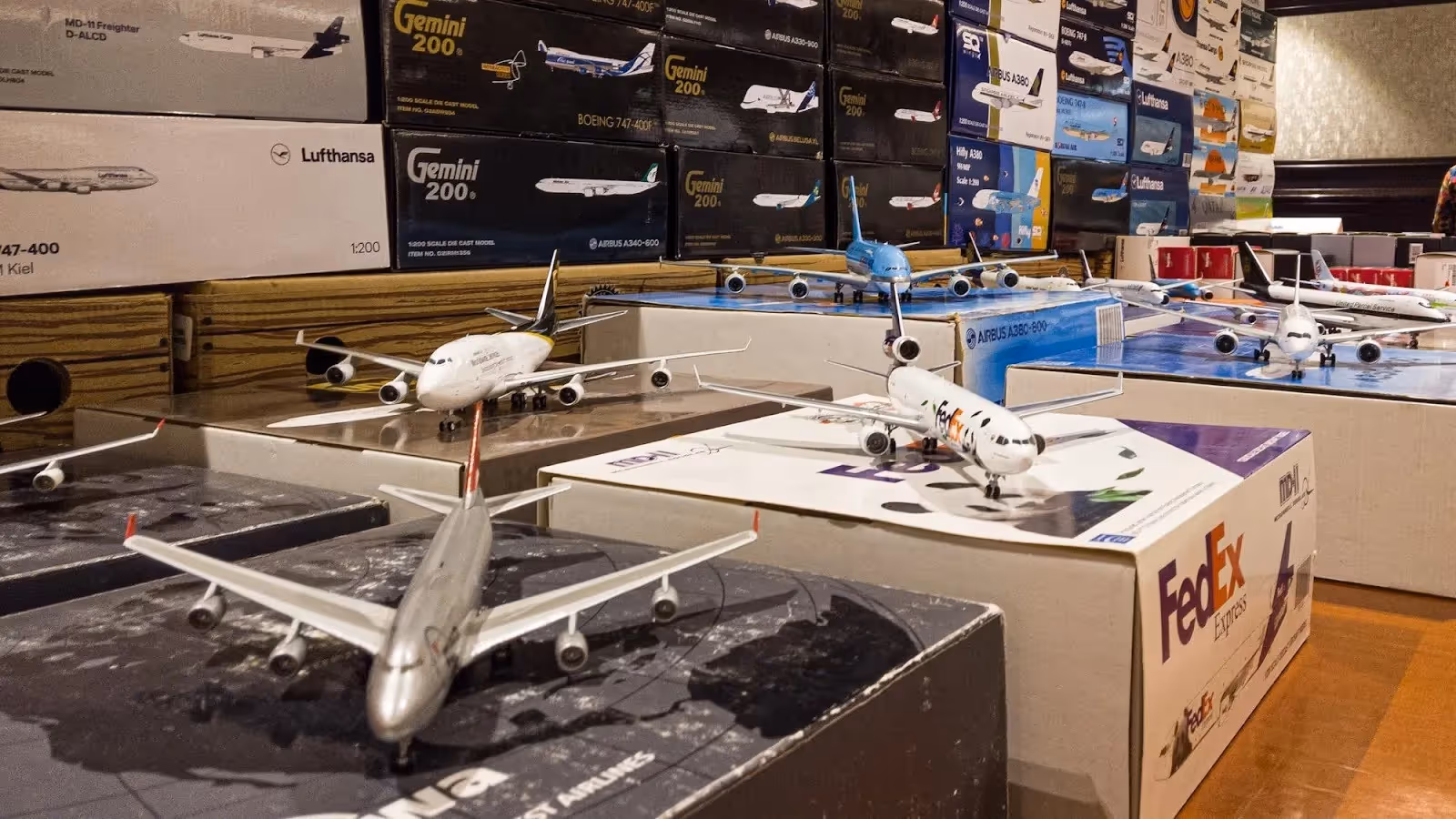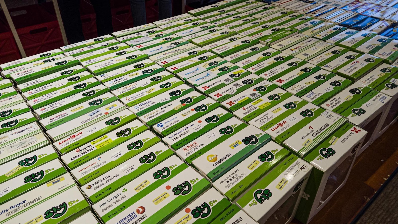 There are many types of collectibles available at the AACF. First, and by far the most popular, are plane models. They are available in every scale imaginable (1/600; 1/500; 1/400; 1/200, and even 1/100 and beyond), and all brands (Herpa Wings, Gemini Jet, NG Models, JC Wings, etc.). Whether new or used, you'll find all the world's major airlines, manufacturers, and aircraft models. You can also find accessories such as miniature airport vehicles, buildings, walkways, in short, everything you need to create your own airport dioramas!