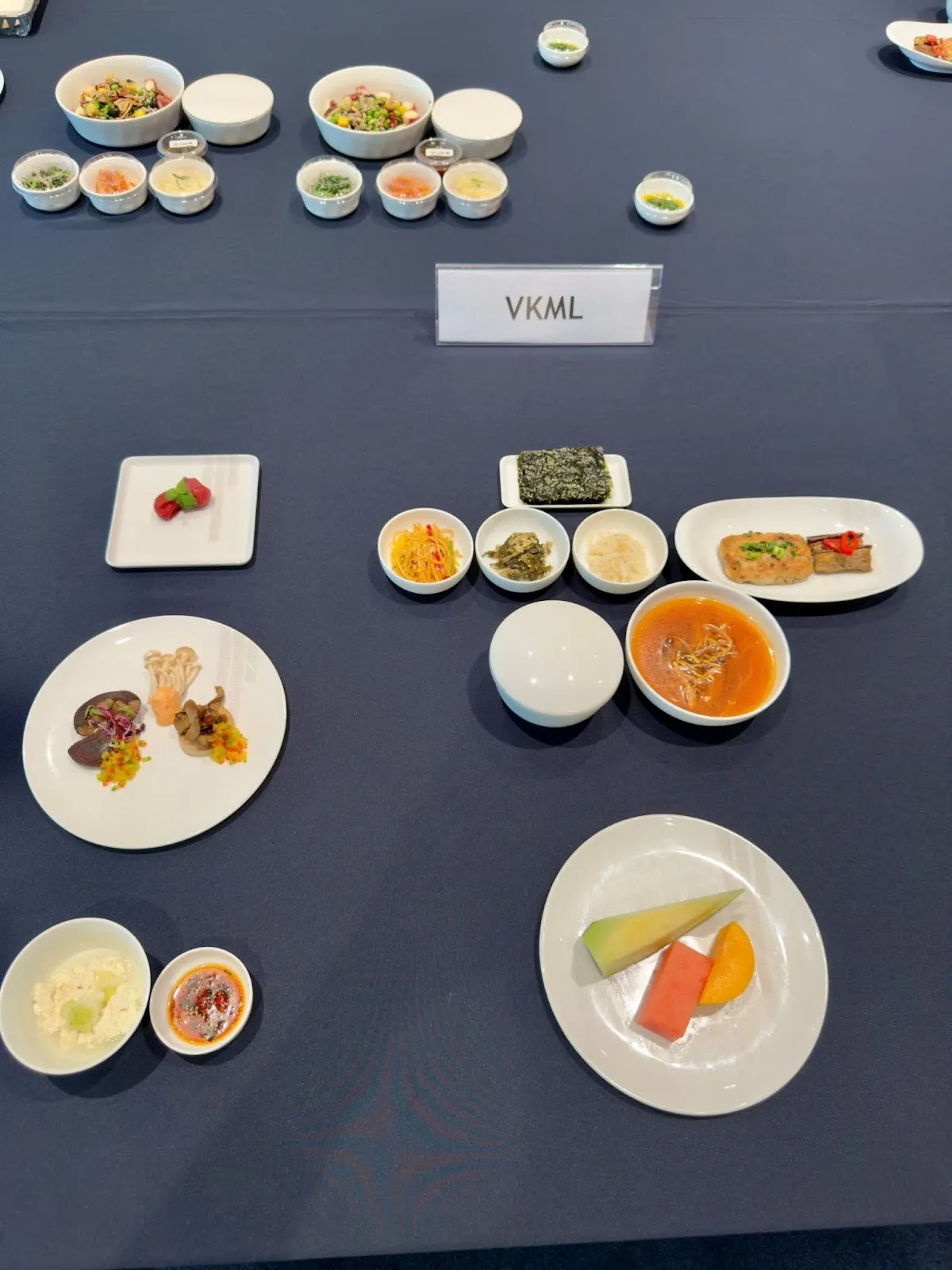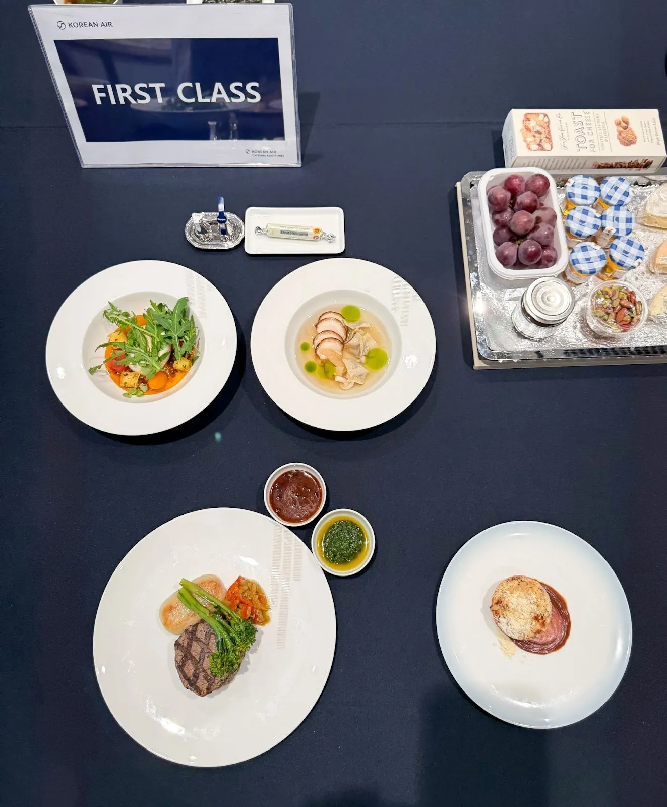 At the end of the tour, we were able to sample KE’s improved in-flight meals that passengers in First and Prestige Class can expect. The dishes feature seasonal Korean ingredients and have been made in collaboration with Chef Saekyeong Kim, providing passengers with an elevated dining experience.