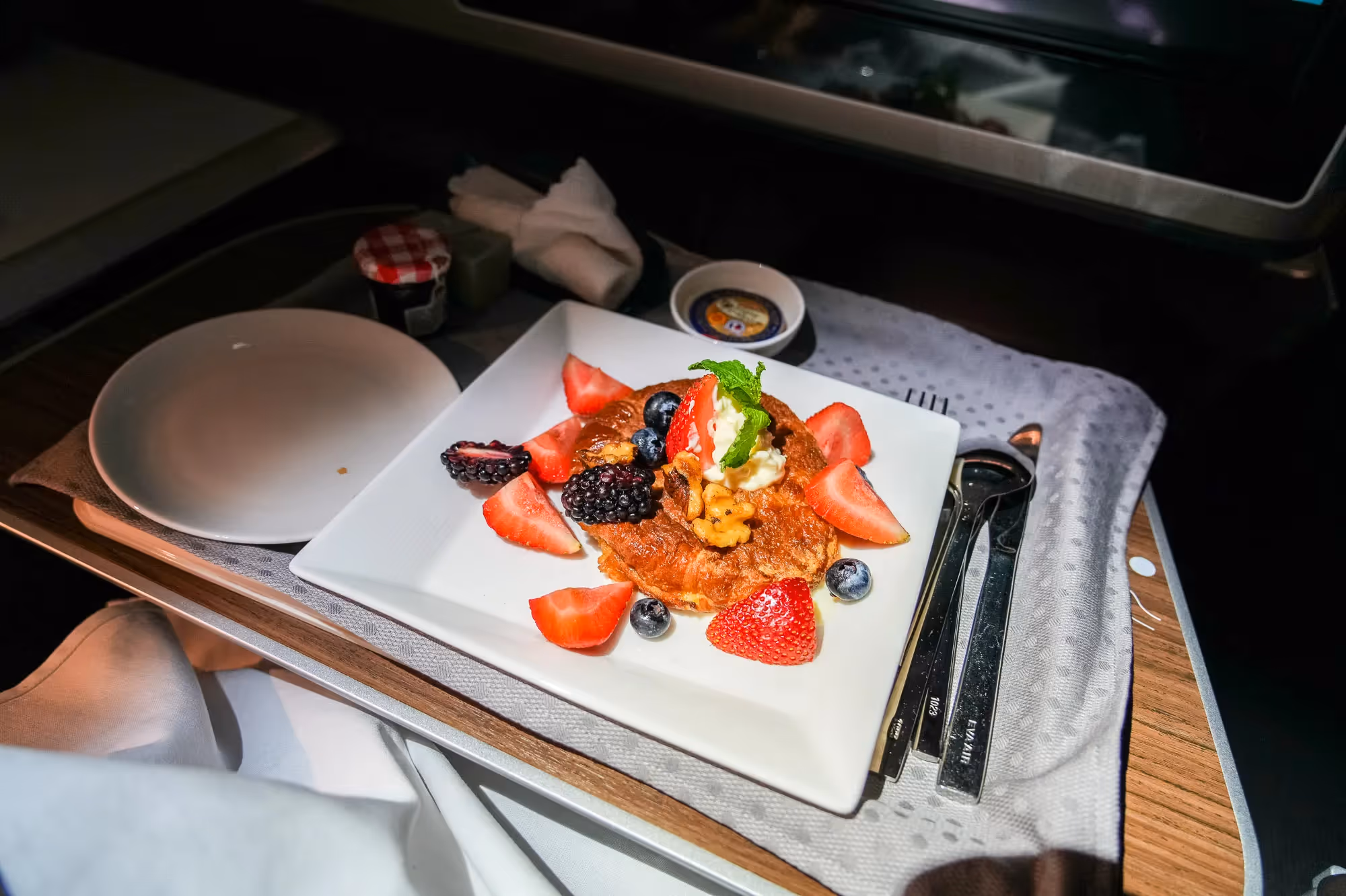 All the dining was top level and simply the best I have ever had on any aircraft so far, beating some tough competition from Oman Air (WY), Emirates (EK) and Cathay Pacific (CX). The cabin was as spotless as it gets, the IFE selection was more than satisfactory and enhanced by great WiFi, and the on-time performance was perfect. Thank you, EVA Air, for today’s great experience.