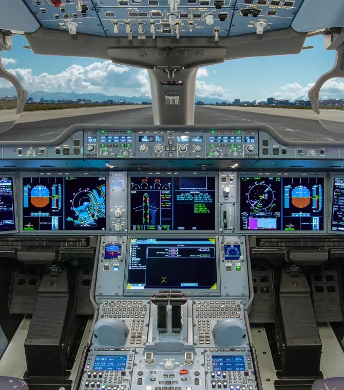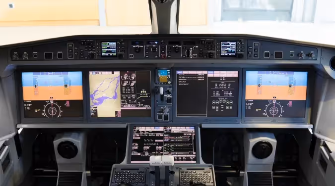 Other significant advances include touchscreen cockpit systems, which enable business jets and new-generation airliners, such as the Boeing 787 and Airbus A350, to feature touch-sensitive panels. These allow pilots to enter data and navigation inputs directly, similar to operating a tablet.