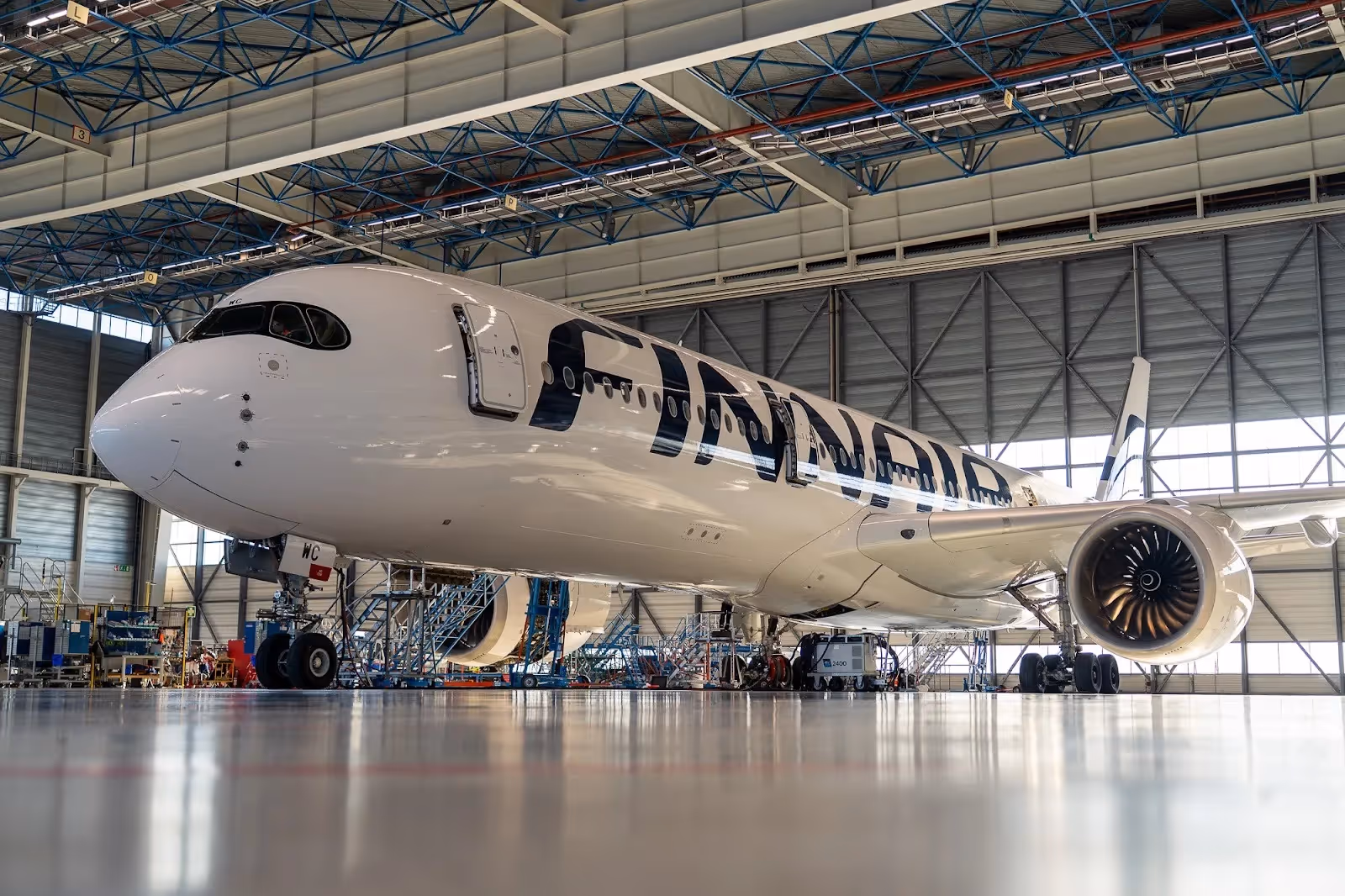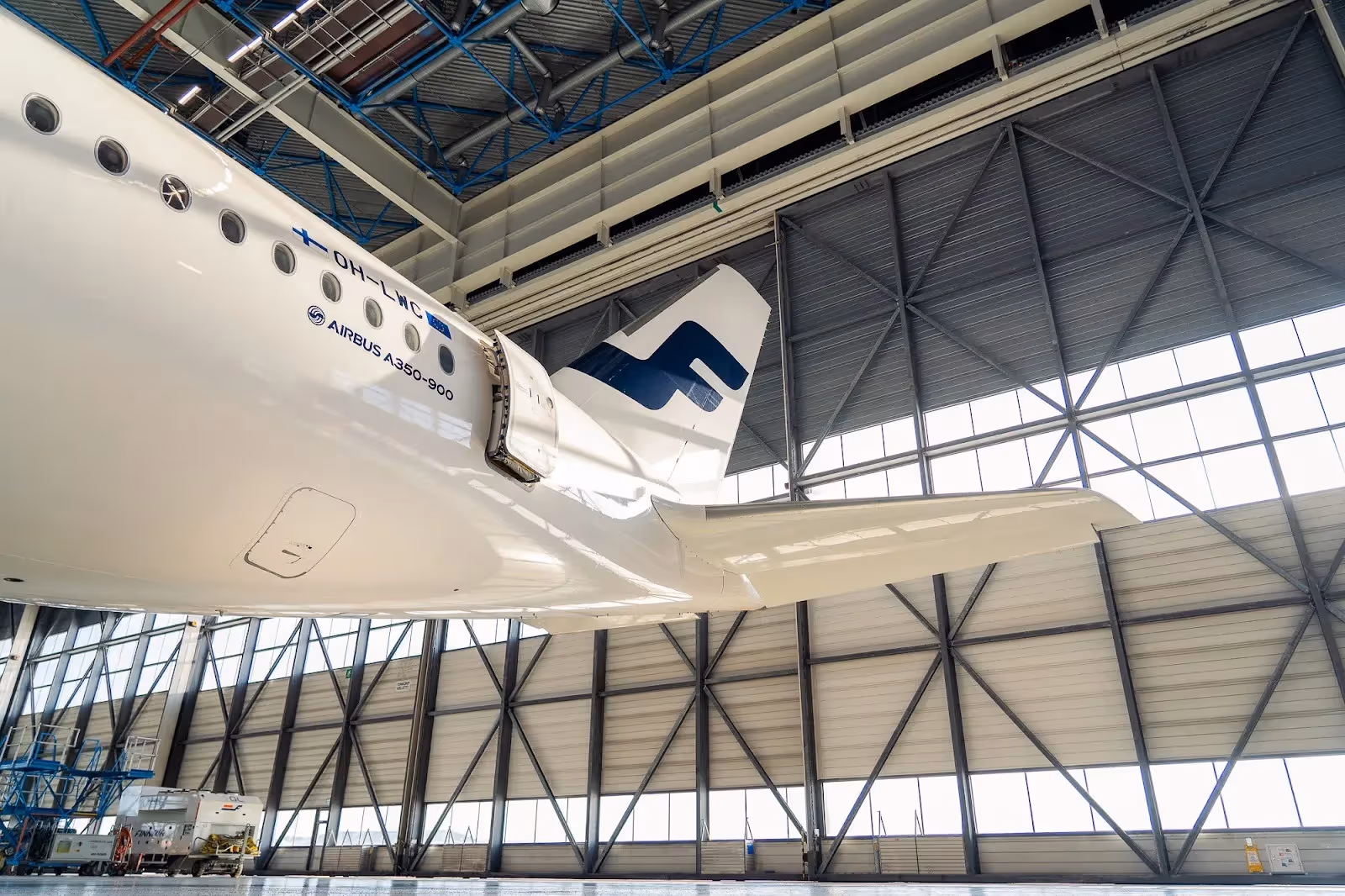 Occupying hangar 7, we found OH-LWC, the third Airbus A350-900 to join AY. The airline was one of the first in Europe to fly Airbus's next-generation widebody back in 2015. More than ten years later, its entire widebody fleet has been refurbished with the brand-new Premium Economy product and the AirLounge Business Class seat.