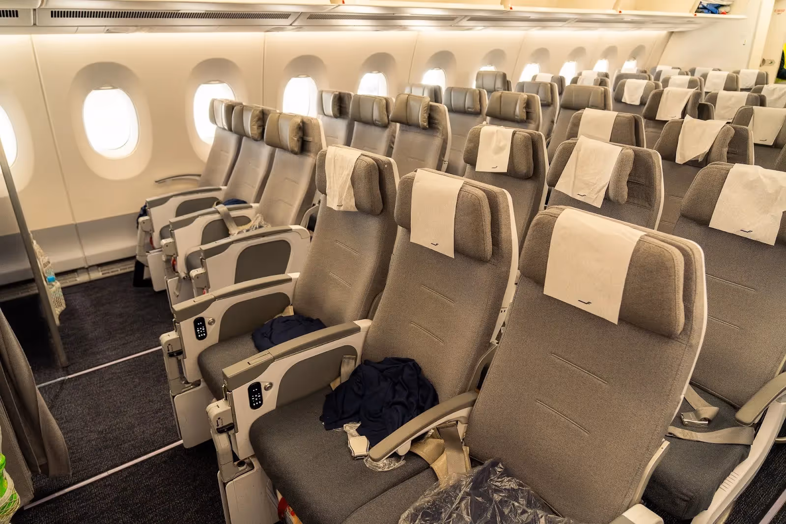 Back, the Premium Economy cabin is configured in a 2-4-2 layout, which is not necessarily the most spacious on the A350. Finnair introduced this product just a few years ago; it features good storage, a large IFE screen, and extended legroom compared to the standard Economy Class cabin.