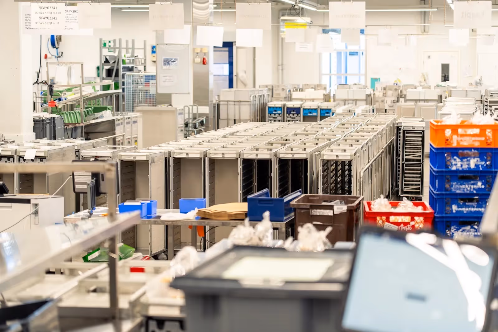 All meals are carefully prepared according to clear guidelines; Finnair has implemented a digital system that allows each workstation to efficiently track its workflow, replacing traditional whiteboards.