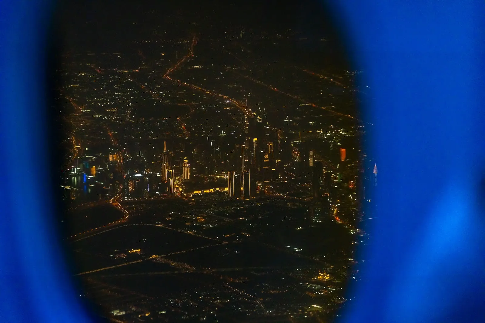 The noise-cancelling headphones worked well and isolated me from the rather disturbing noise created by other passengers throughout the whole flight. I slept for a couple of hours before waking up as we began crossing the Arabian Gulf. We were served a warm snack consisting of a chicken wrap, and immediately after, the cabin was prepared for approach. We flew into the darkness some time before Dubai’s skyline appeared on the horizon. I could film a bit from my neighbor’s window as we descended and lined up.