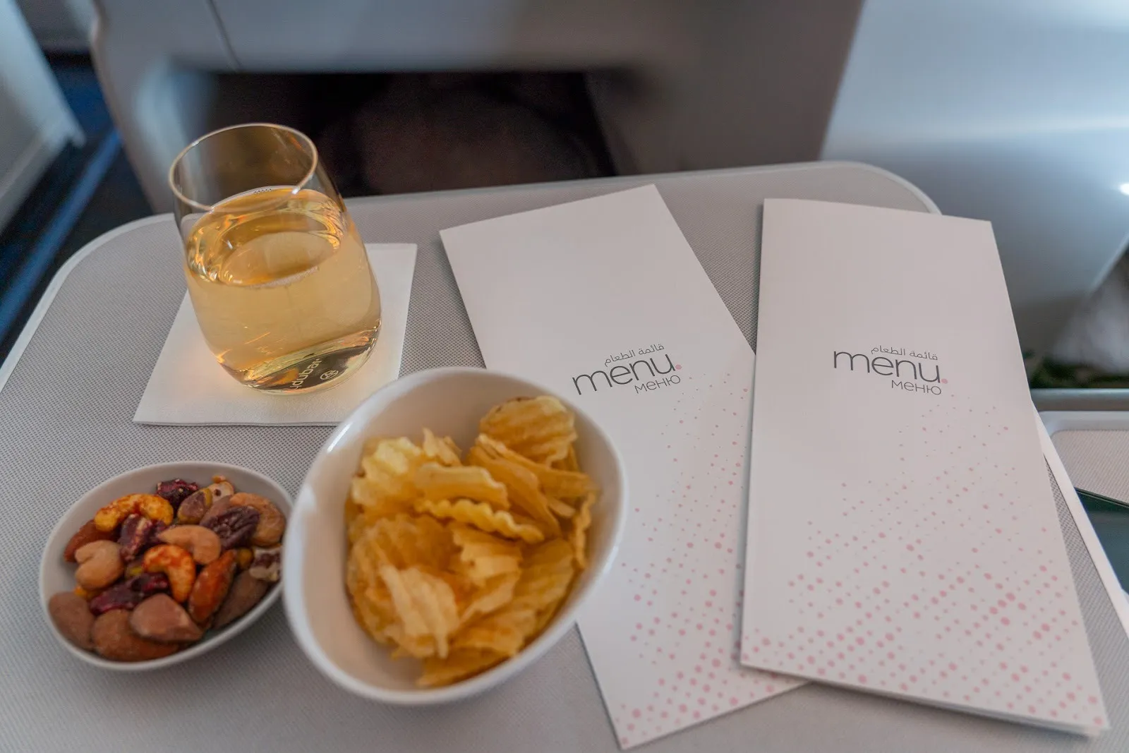 I boarded ahead of time to check out the clean cabin and record some footage for our YouTube video review. The aircraft, A6-FMO, arrived on time from Dubai International Airport. It got cleaned, and the crew swapped, with our crew ending their Italian layover with this flight.