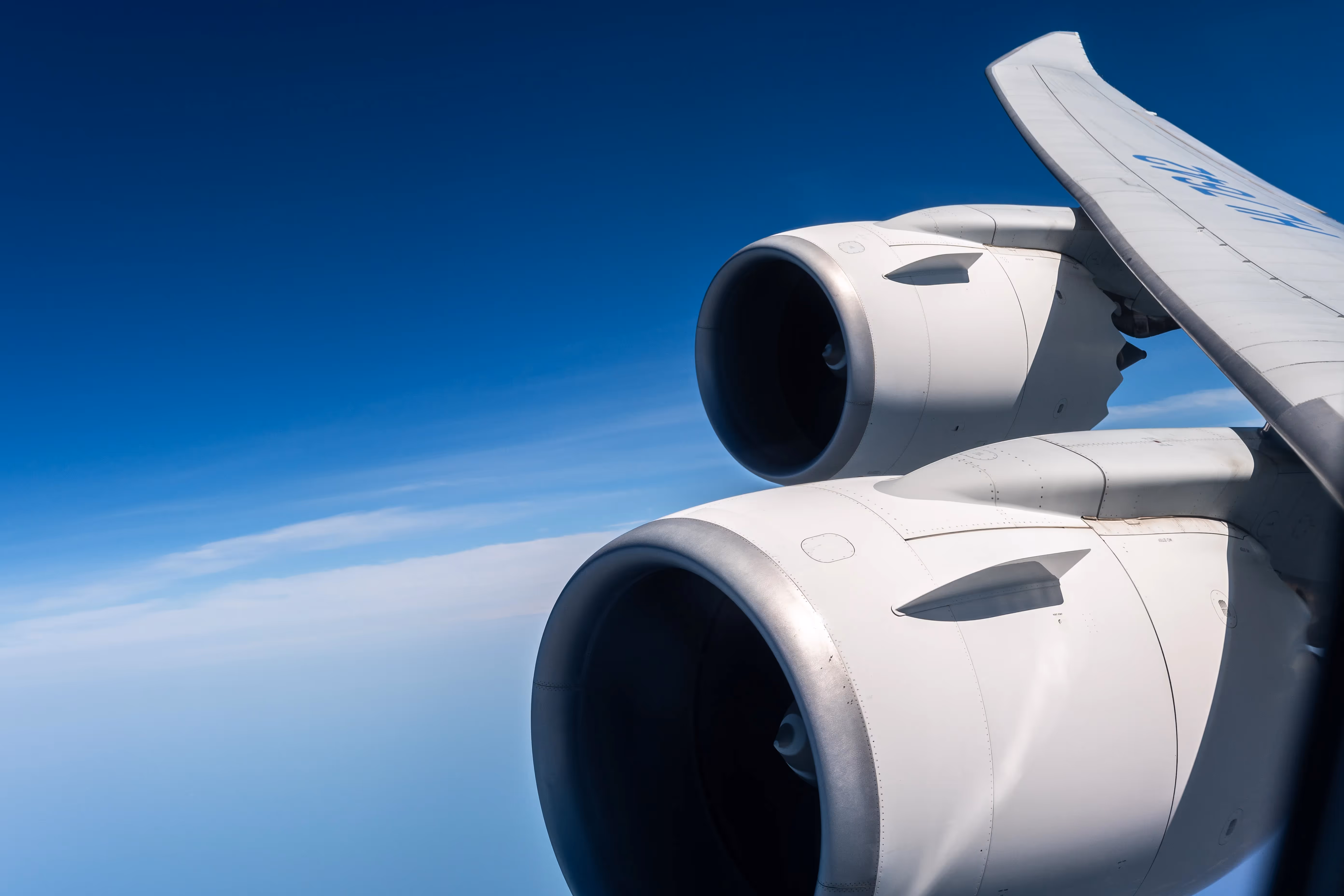 Looking out the window, the cloud clover became prominent below us, and I knew we must have been somewhere over Europe. The late afternoon sun brilliantly lit up the engines, always a treat to see when flying westbound into the sunset.