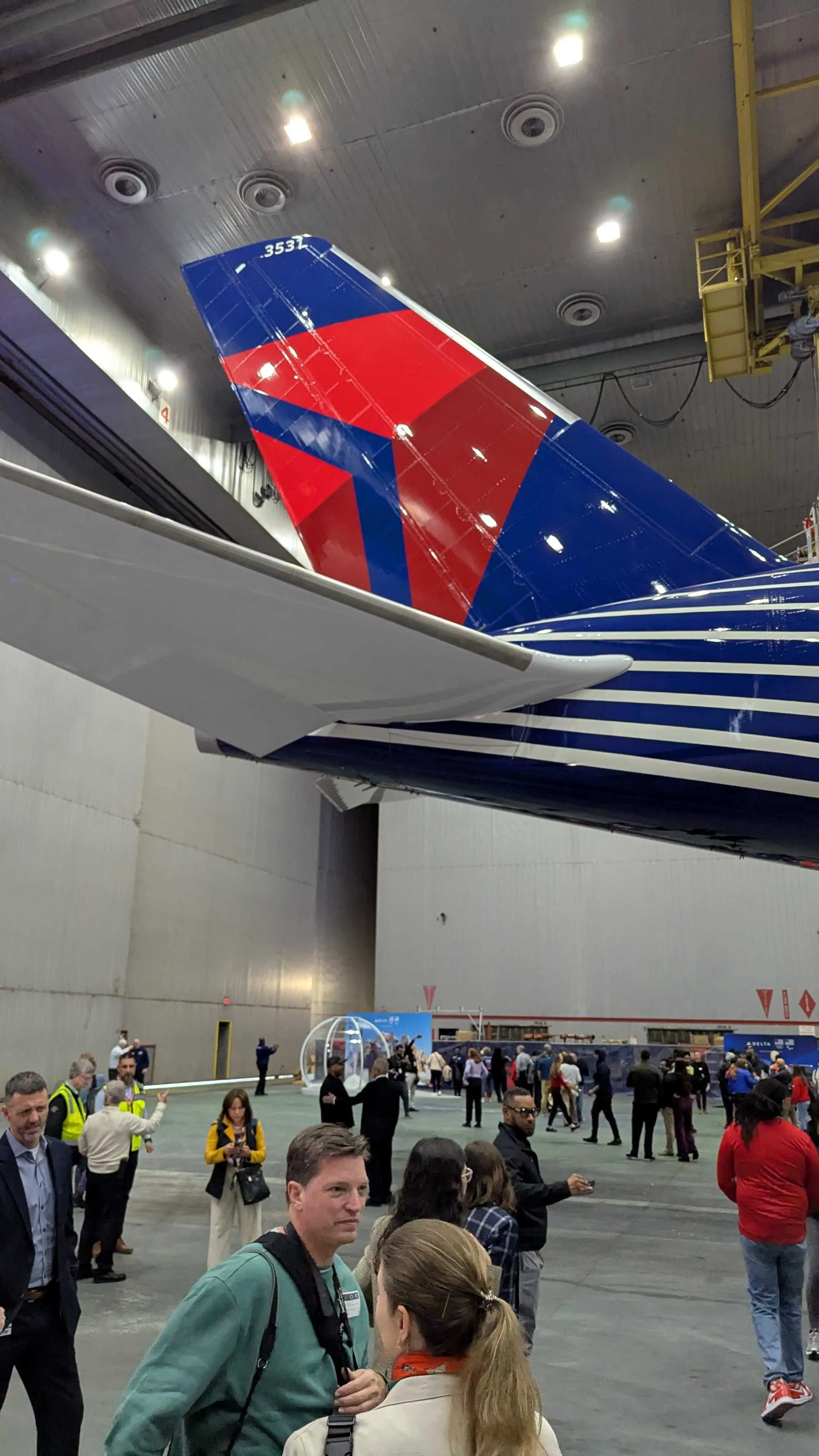 ATLANTA — Yesterday, January 8, Delta Air Lines (DL) hosted a celebration at its Tech Ops center to unveil the new livery for its sponsorship of the Milano-Cortina Olympic Games. On display was N531DN, an Airbus A350-941, the first aircraft with this livery and Delta’s 40th A350.