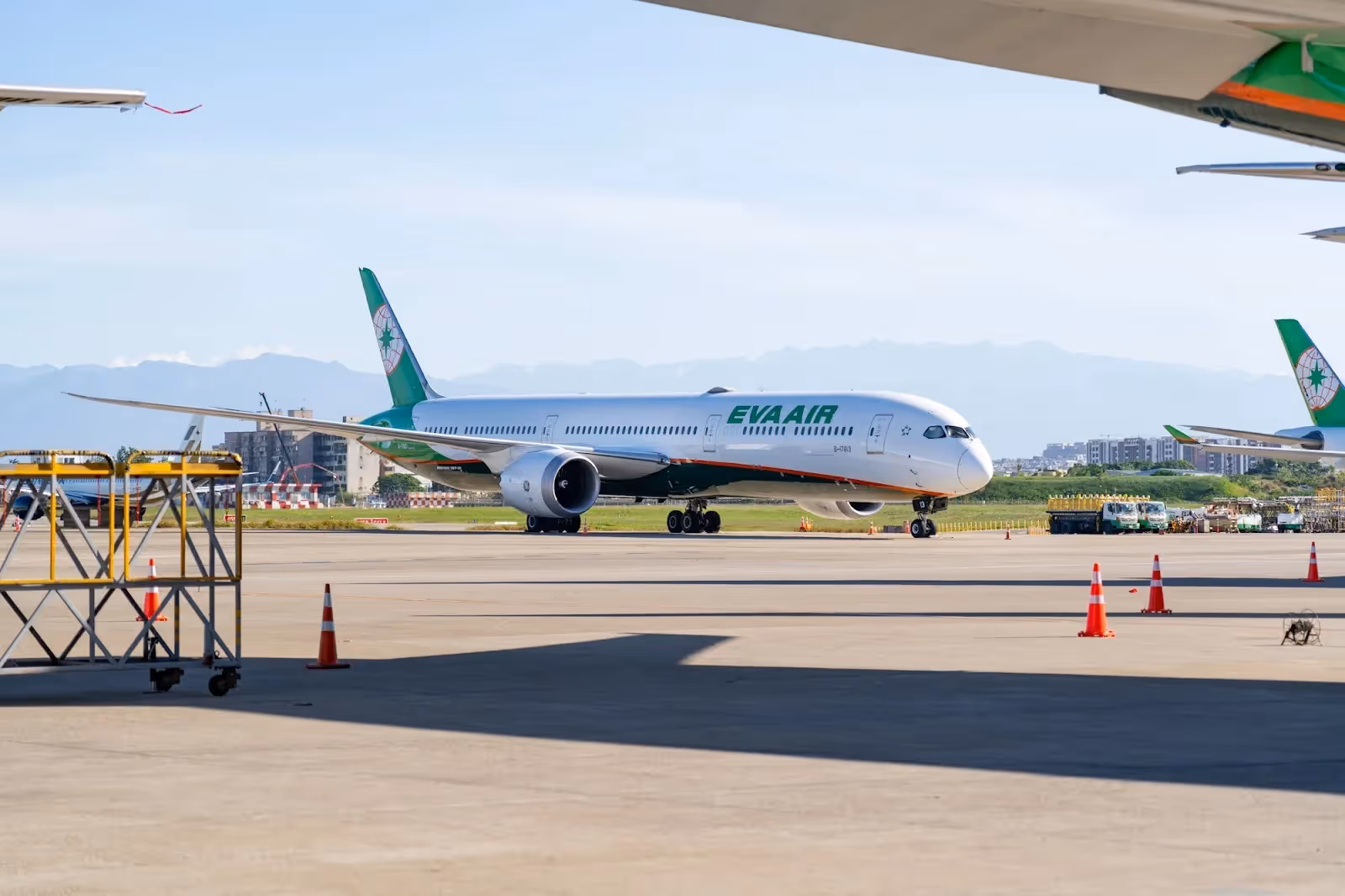 Parked on the apron, numerous wide-bodies from BR, including B-16333, one of the Airbus A330s in BR’s fleet to feature the special Sanrio Characters livery. A second A330, B-16331, also featuring a similar livery, was parked just outside the hangar with its engines covered. The absolute majority of aircraft was made of EVA Air’s widebodies, including a Boeing 787 undergoing cabin refurbishment.