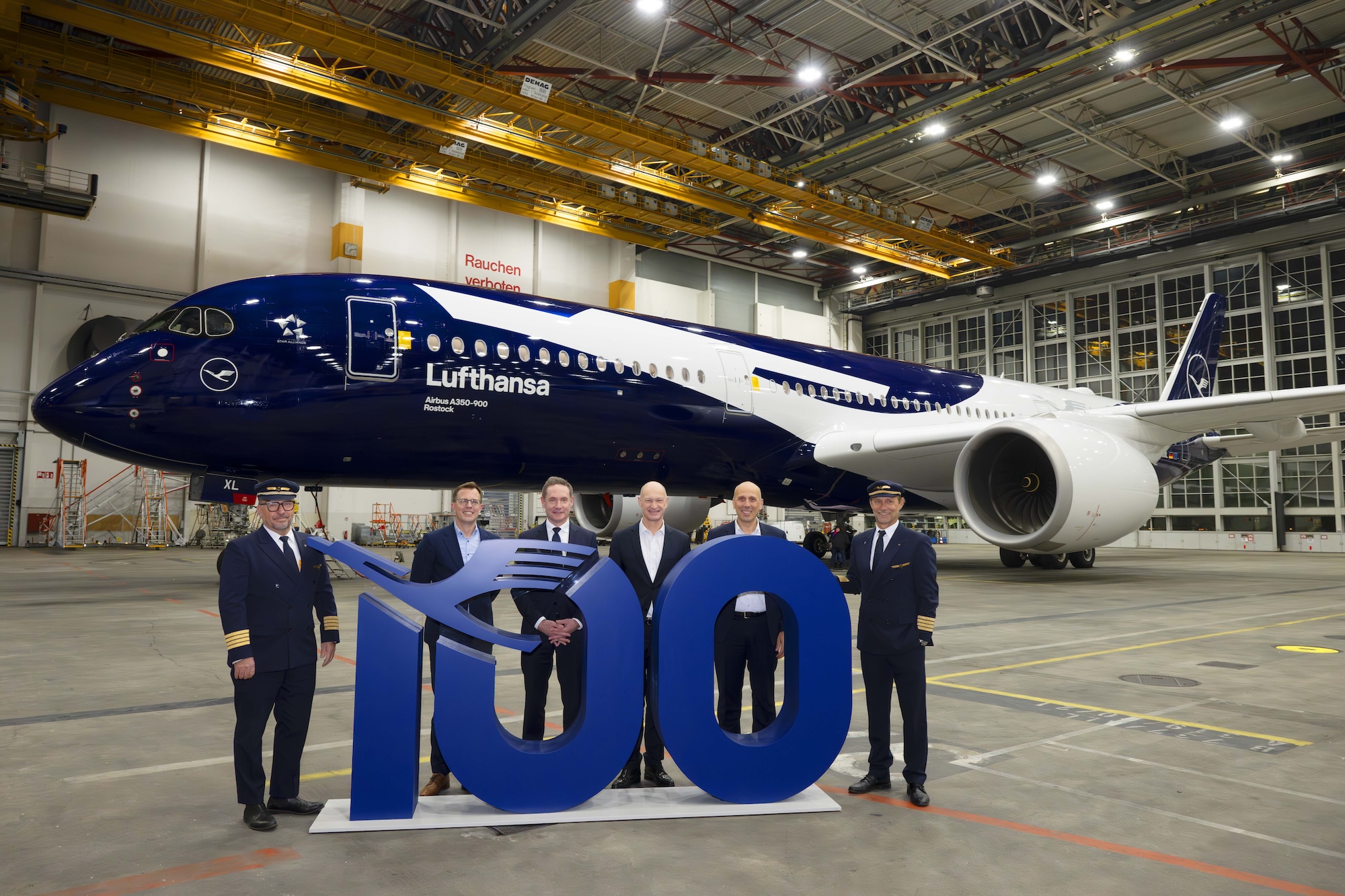 Right now, both an A380 and a 747-8 are getting their new coats of paint in Shannon (SNN) and San Bernardino (SBD), respectively. Both jumbos, D-AIMH and D-ABYN, are expected to roll out over the next few weeks. The A350-1000 will be delivered new from Airbus as deliveries of the new type begin later this year.