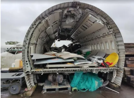 When the parts cannot be recycled for function, they are upcycled to retain material value. Aerospace aluminum is recycled for industrial purposes, titanium is reclaimed from engine components, and tire rubber is reconditioned for energy recovery or ground materials. Even fire extinguisher fluids, oils, and gases are now safely recovered and reused.