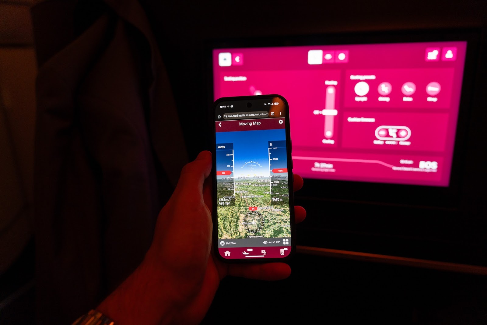 The new interface is a much-needed upgrade over the existing product. It is hard to navigate, packed with features, and as responsive as you’d expect. The Airbus A350-900 is equipped with a whopping five external cameras, which can be viewed on the main screen or the large tablet next to the seat. The title selection is good; however, I did not have the time to enjoy much of the content, aside from a documentary about Max Verstappen’s Formula One career.