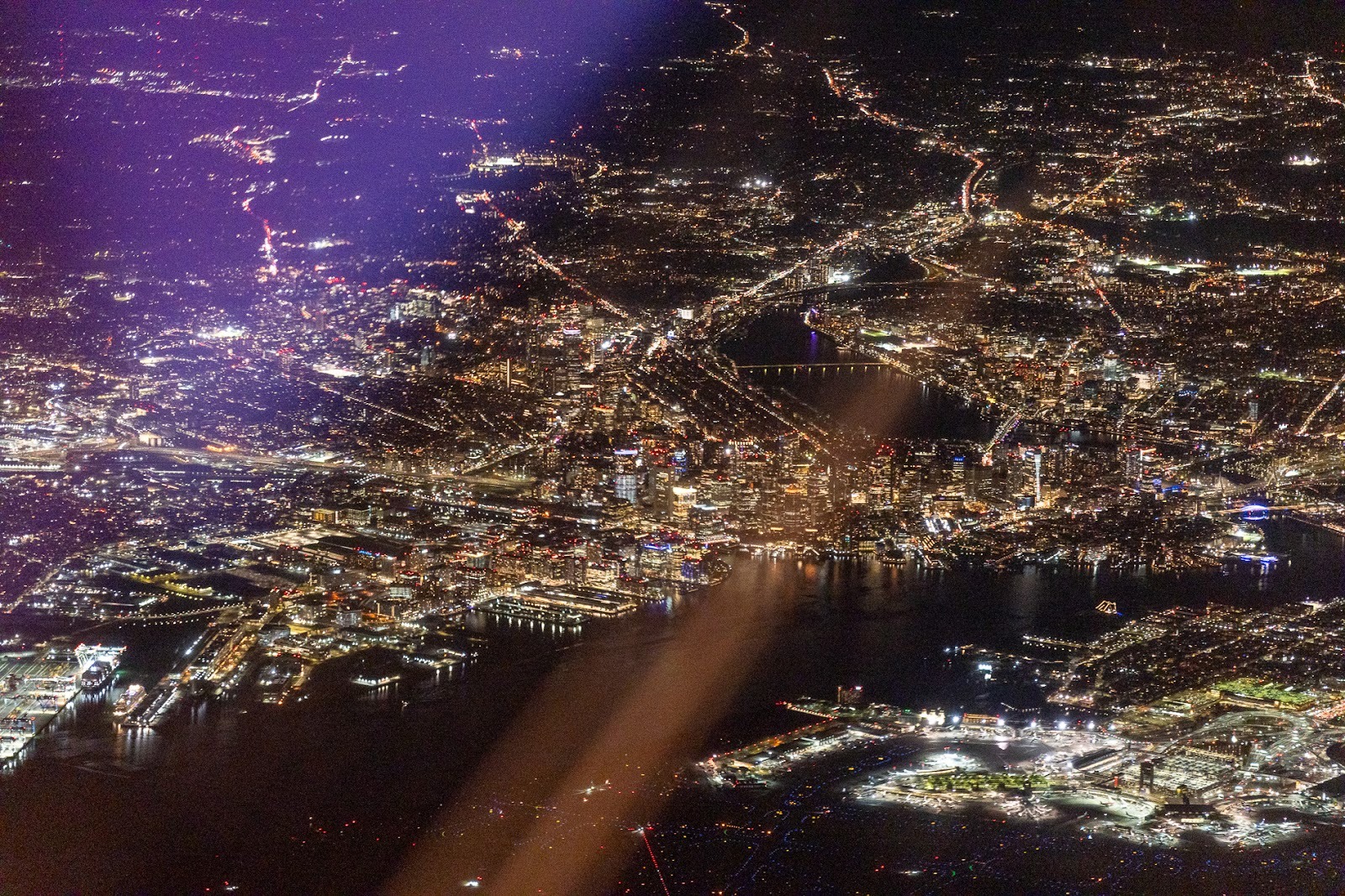 We started our descent into Boston, where the clear night sky made the city shine bright from the right side of the aircraft.