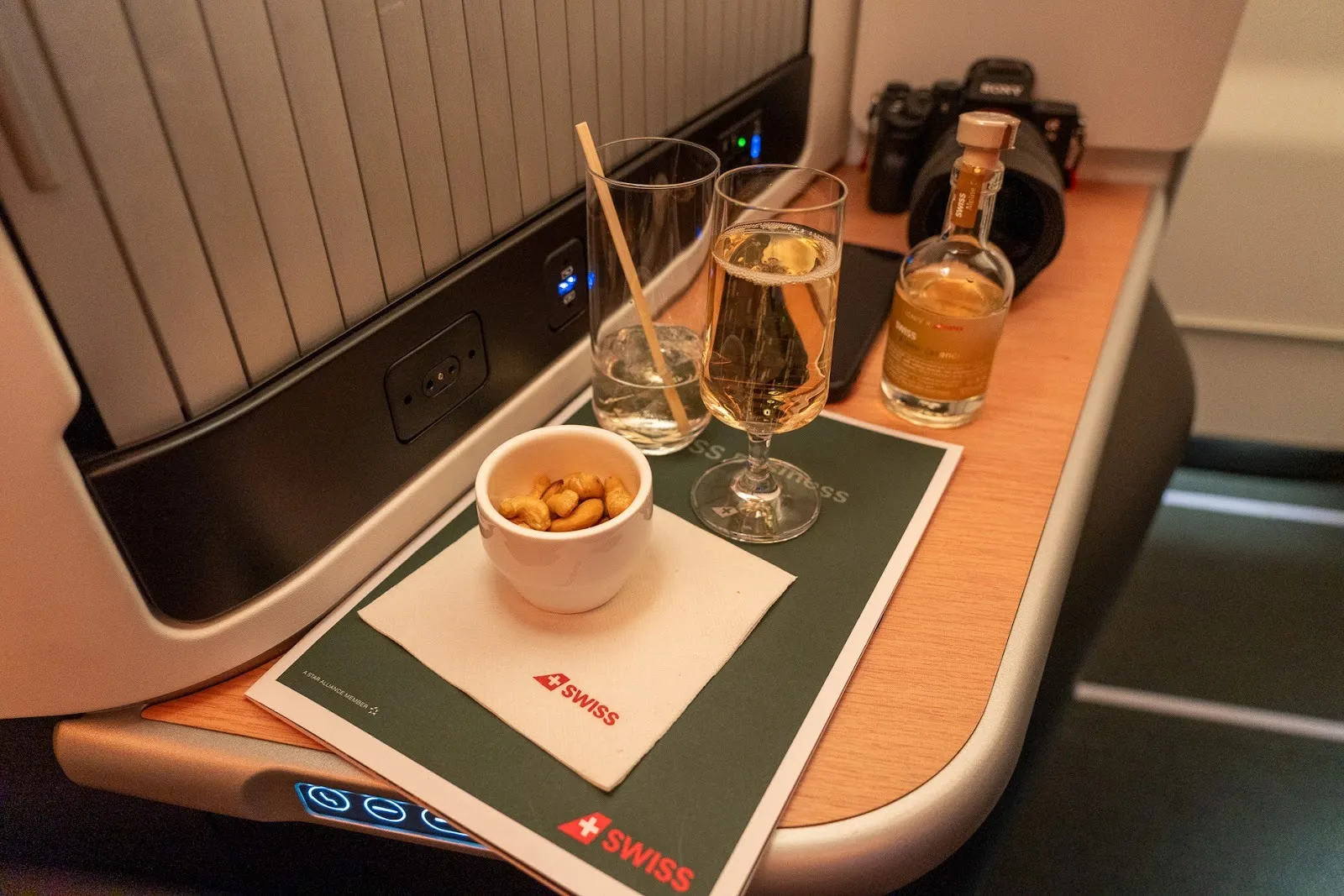 The meal concluded with a caramelized chestnut mousse with raspberry and gruyere cream and, of course, Swiss chocolate. The meal quality and service indeed exceeded my experience in LX’s Business Class from 2024 on the Boeing 777-300ER, with more attention to detail in both presentation and service.