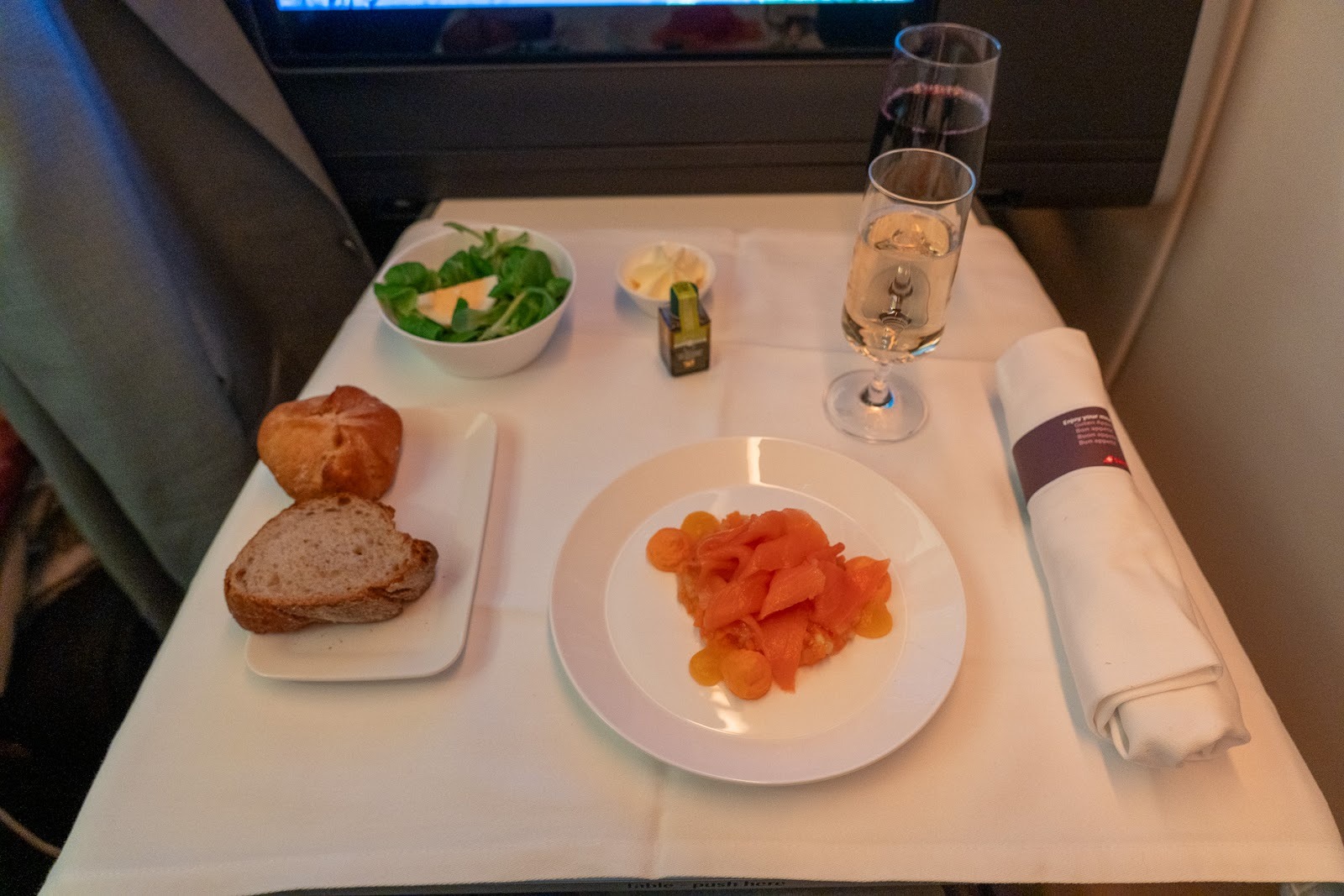 The dining service started soon after take-off with an aperitif. I enjoyed a glass of LX’s new signature cocktail, “SWISS Alpine Essence”. This brings some elegant notes of dry white vermouth, elderflower, and herbal flavors for a nice start to the dining service.