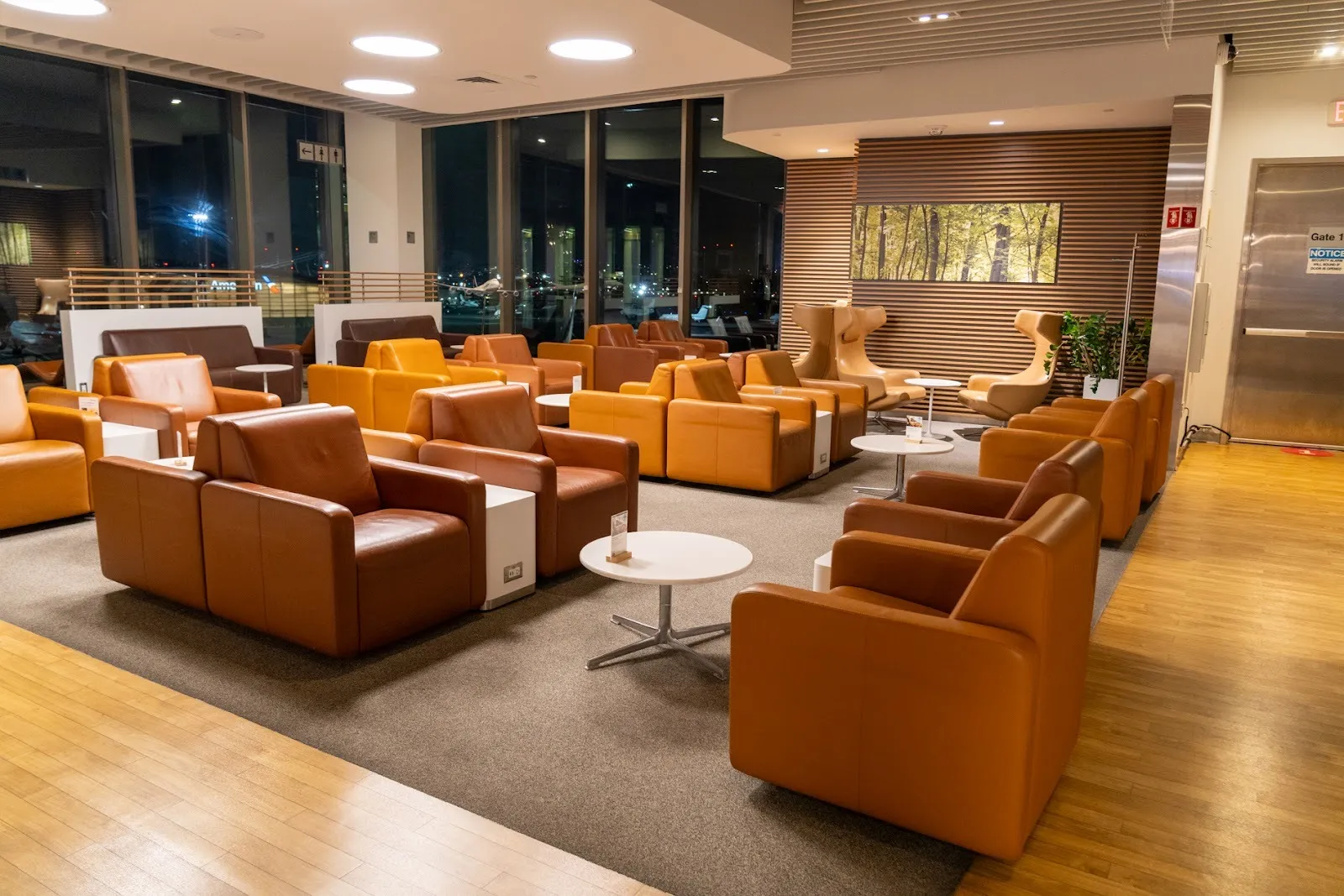 Passengers traveling with LX, and more generally with a Lufthansa Group airline, can access the dedicated Lufthansa Group lounge in Terminal E. This is located right across from gate E11 and is open every day from 12:15 pm to 9:30 pm. The lounge features all the amenities you’d expect from a high-end product and was still adorned with an inaugural painting of the first LX52 flight operated by the Airbus A350-900 from the day before.