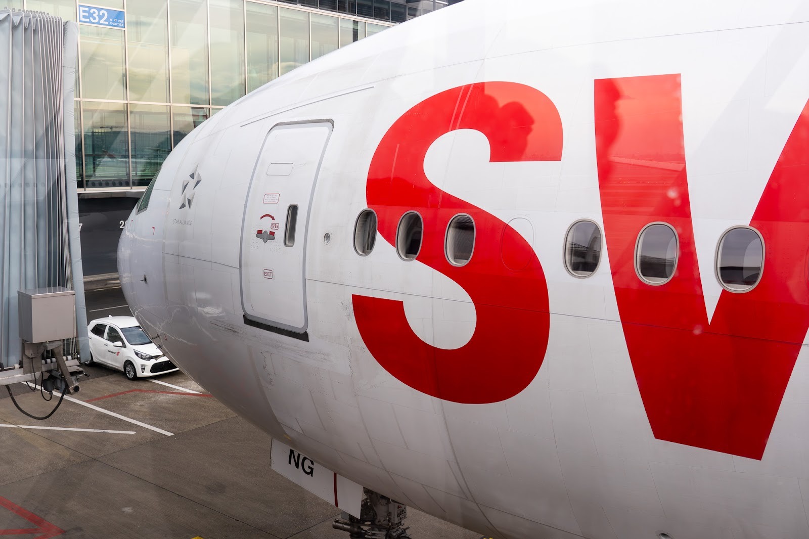 Our short layover meant we could not access the lounge complex just upstairs from our gate; the aircraft, a Boeing 777-300ER, was already at the gate. As catering trucks began to arrive, the ground staff announced that the flight would be slightly delayed. We took the time to reshuffle our suitcases, preparing all the essentials for this 12-hour journey to Tokyo.